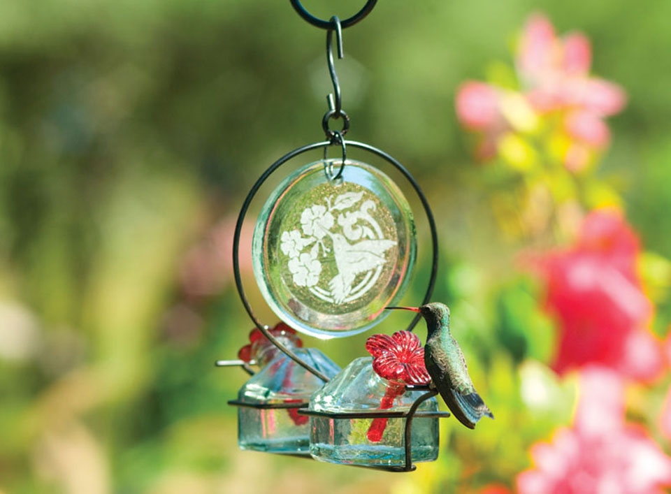 The Bouquet Deluxe Medallion features a medallion etched with our popular hummingbird design. Individual perches allow the hummingbirds to rest and feed longer. Holds 6 oz of nectar and measures 9″ x 6″