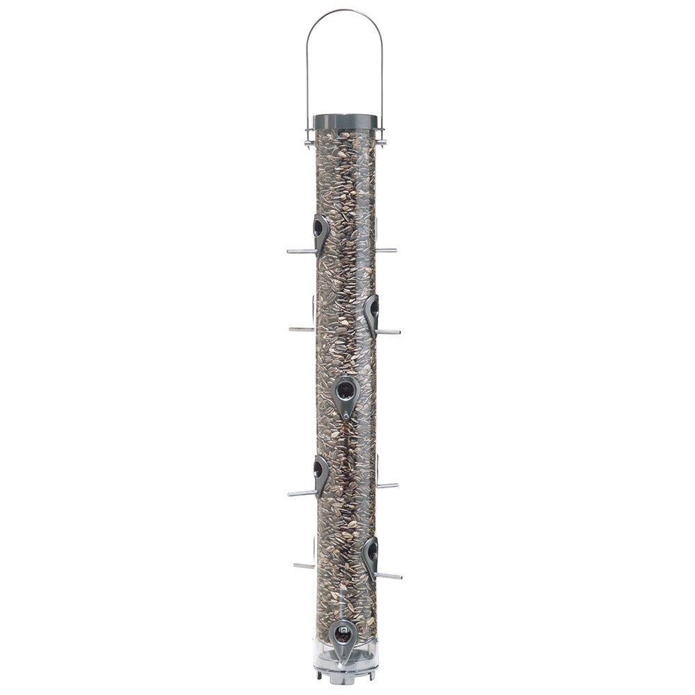 - The clear UV Stabilized Polycarbonate feeder tube keeps the seed level visible, a key to attracting birds, and is perfect for holding 4 lbs. of seed